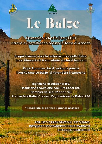 L’escursione sarà guidata da Antonio Magnelli e si immegerà nella bellezza unica e suggestiva delle Balze del Valdarno, a metà escursione sarà possibile pranzare presso l’agriturismo le Balze, per chi non volesse sarà possibile portare il pranzo a sacco da casa.