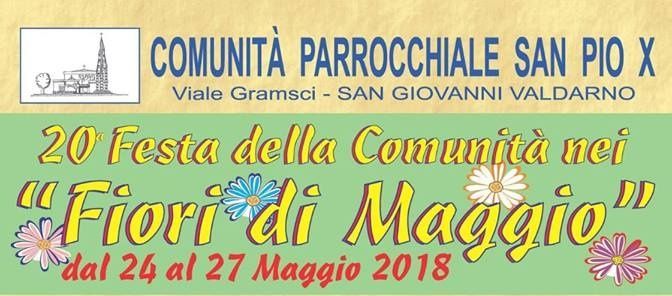 Nei giorni 24-25-26 e 27 Maggio si svolgerà, presso la Parrocchia di San Pio X in Viale Gramsci, San Giovanni Valdarno (AR), la “20° Festa dei Fiori di Maggio” in un'edizione ricca di eventi cui assistere e appuntamenti golosi da non perdere! Ecco allora il programma: