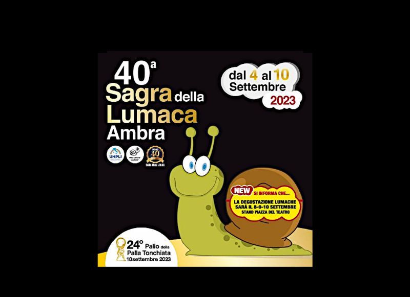 40° Sagra della Lumaca e Festa della Birra di Ambra, Bucine, Arezzo; fino a Domenica 10 Settembre il Borgo di Ambra si animerà dell'ormai tradizionale convivio settembrino, per degustare piatti in cui le vedono come protagoniste le lumache al sugo e altri prodotti.