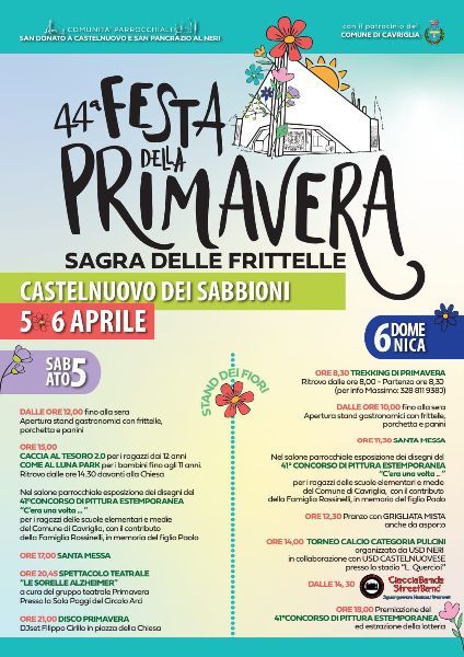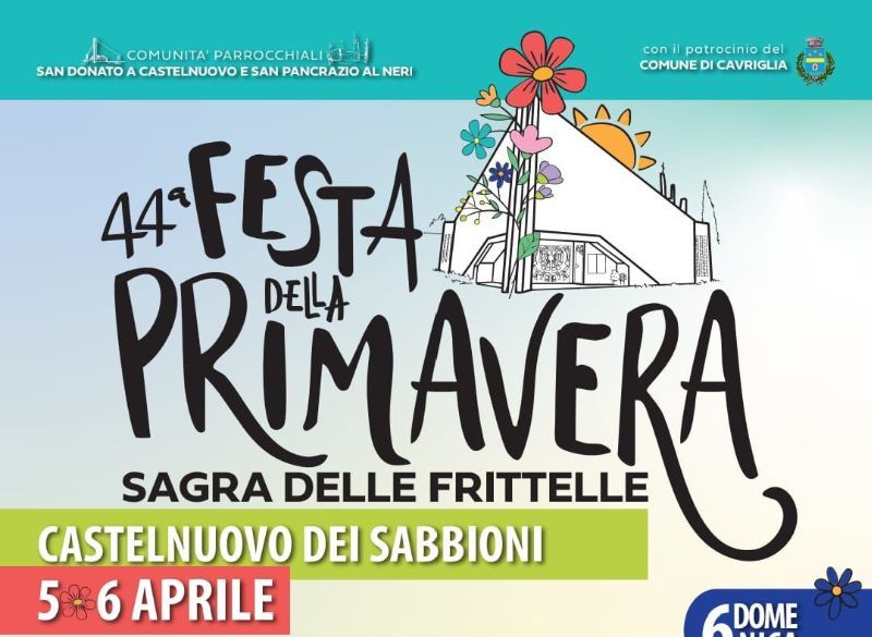 Fine settimana in festa a Castelnuovo dei Sabbioni, con la 44 Festa di Primavera; due giorni di festa con tante iniziative che vi riportiamo di seguito, insieme al profilo facebook dove trovare numerose altre informazioni.