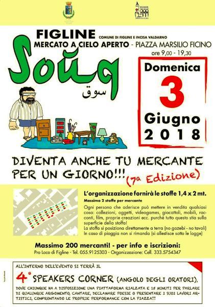 Anche quest’anno si terrà, a Figline Valdarno, una nuova edizione del “Souq” un mercato a cielo aperto dove chiunque può trasformarsi in “mercante per un giorno”.