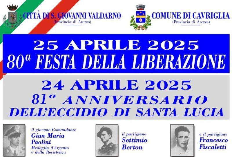 La mattina del 24 aprile alle ore 10 si svolgerà la commemorazione dell'eccidio di Santa Lucia, esattamente nel luogo ove esso avvenne 81 anni fa e in collaborazione con l'Amministrazione Comunale di San Giovanni Valdarno e Anpi Valdarno.