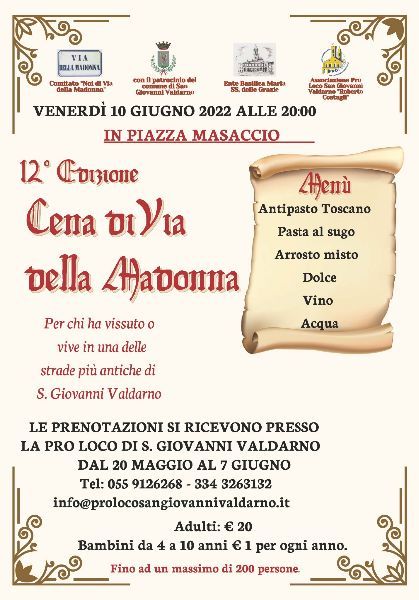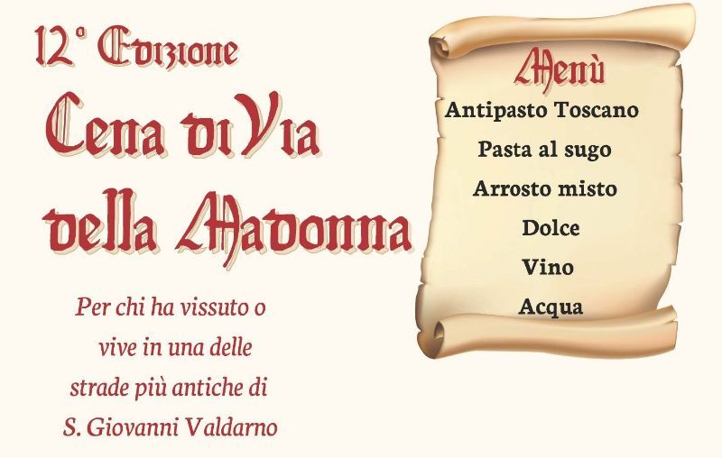 Per chi ha vissuto o vive in una delle strade più antiche di S. Giovanni Valdarno e non solo una cena conviviale in piazza Masaccio, San Giovanni v.no;