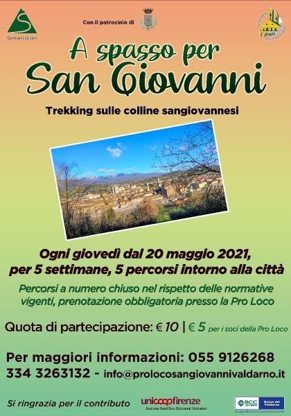 “A spasso per San Giovanni”, progetto nato dalla collaborazione tra la Pro Loco cittadina ed Antonio Magnelli - Guida Ambientale Escursionistica di Sentieri di Ieri -, ha lo scopo di scoprire alcuni luoghi poco conosciuti, forse rimasti nella memoria delle persone più adulte, oltre al piacere di stare insieme e di passare del tempo all’aria aperta. È un modo di vedere San Giovanni da punti diversi, con occhi diversi, per alcuni saranno luoghi conosciutissimi ma magari frequentati solo in gioventù, per altri potrebbero essere anche delle vere e proprie novità.