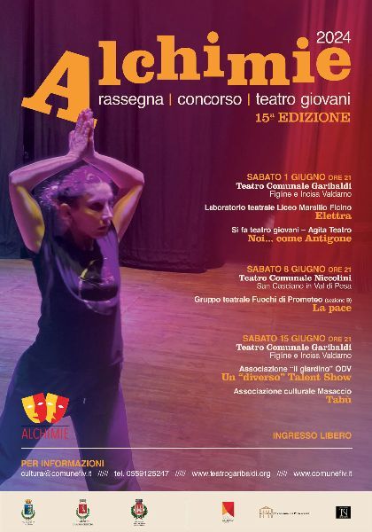Rivolta agli studenti delle scuole superiori e ai gruppi teatrali non professionisti, Alchimie rappresenta ormai da tempo un laboratorio aperto e un fertile terreno per le sperimentazioni di giovani produzioni teatrali, con l’intento di avvicinare al teatro una nuova generazione di appassionati, sia sul palco che in sala.