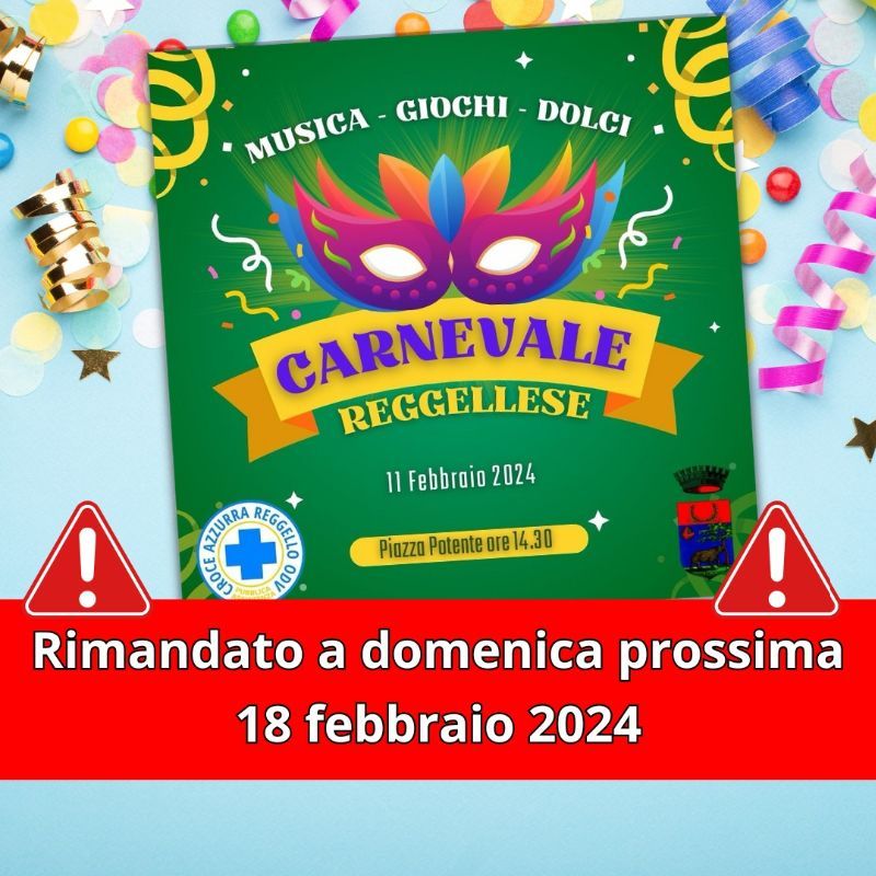 Quella che doveva essere l'ultima domenica di carnevale è stata rovinata dal maltempo, alcuni comuni hanno deciso di spostare la sfilata di carnevale al Domenica 18 Febbraio.