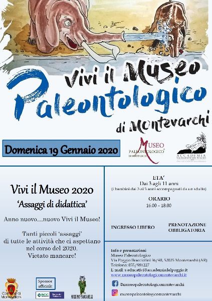 Domenica 19 Gennaio, dalle ore 16:00 alle ore 18:00, presso il Museo Paleontologico di Montevarchi, si terrà l’incontro “Assaggi di didattica”, cioè la presentazione del nuovo “Vivi il Museo 2020”.