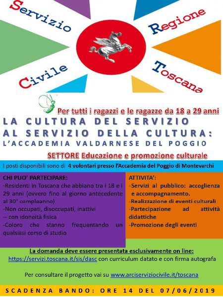 Riparte il servizio civile regionale presso l’Accademia Valdarnese del Poggio di Montevarchi: un’opportunità per poter vivere una realtà dinamica, unica nel territorio del Valdarno.