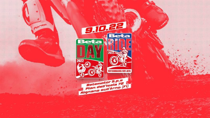 Domenica 9 Ottobre Beta Motor organizza il BETA DAY 2022, presso la sua sede a Pian dell'Isola, Rignano (FI), una giornata per gli appassioanti delle due ruote in fuori strada, con le finali Enduro e Trial Master Beta a cui si aggiunge la prima edizione della Motocavalcata Beta Ride, per una giornata indimenticabile!