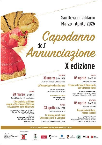 “Come ormai tradizione, l’Amministrazione comunale, in collaborazione con i musei comunali e il museo della Basilica, – hanno dichiarato il sindaco Valentina Vadi e l’assessore alla cultura Fabio Franchi – organizza eventi di grande rilevanza per valorizzare e promuovere il Capodanno dell’Annunciazione –Capodanno Toscano. Da un lato, questa iniziativa si fonda sul legame storico che unisce San Giovanni Valdarno a Firenze, dall’altro, il Capodanno dell’Annunciazione è profondamente legato all’Annunciazione di Beato Angelico, uno dei capolavori indiscussi della storia dell’arte. Quest’opera è custodita nel Museo della Basilica di San Giovanni e rappresenta un elemento di forte identità per la nostra città, con i suoi profondi legami non solo con la storia sociale e cittadina, ma anche con la storia dell’arte tout court.