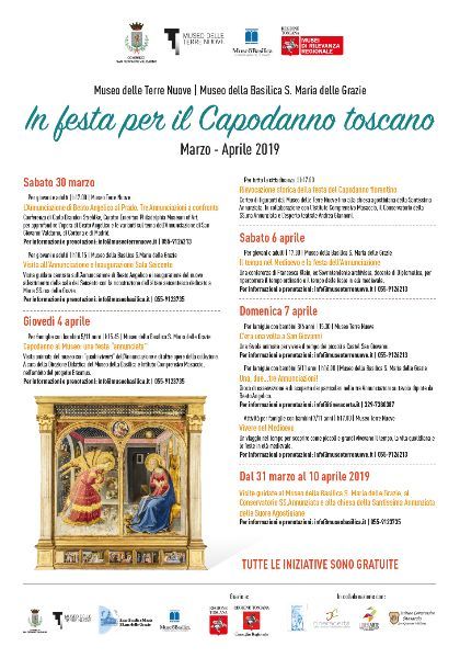 Da Sabato 30 Marzo a Domenica 7 Aprile 2019, a San Giovanni Valdarno, in occasione dei festeggiamenti per il Capodanno Toscano IV edizione, è in programma un ricco calendario d’iniziative organizzate presso il Museo delle Terre Nuove e il Museo della Basilica di S. Maria delle Grazie.