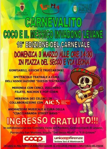 Domenica 3 Marzo, dalle ore 14.30, in occasione del Carnevale, a Levane, frazione del Comune di Montevarchi, si festeggia il... Carnevalito!!!