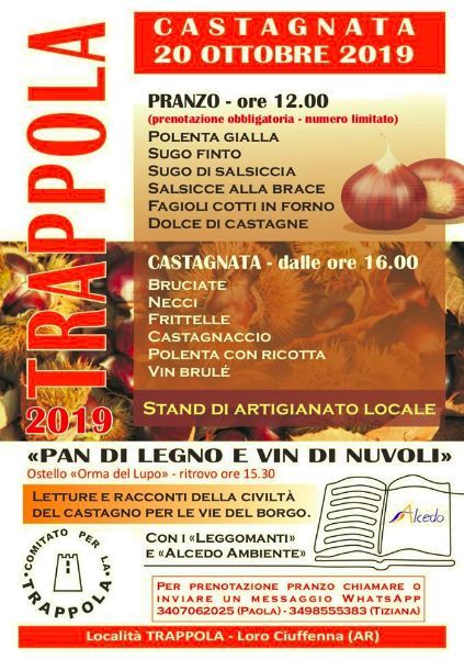 Domenica 20 Ottobre, nella graziosa località montana della Trappola a Loro Ciuffenna, si terrà il tradizionale appuntamento con la “Castagnata Trappolina”.