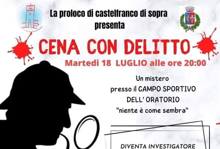 Martedì 18 Luglio la Proloco di Castelfranco di Sopra organizza una Cena Con Delitto, Un mistero presso il CAMPO SPORTIVO DELL' ORATORIO "niente è come sembra", inizio dell'evento ore 20.00.