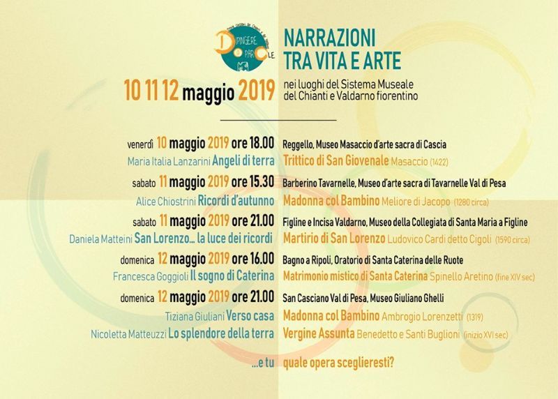 Da Venerdì 10 a Domenica 12 Maggio si terrà un’interessante manifestazione culturale dal titolo "Dipingere a parole. Storie circolari del Chianti e del Valdarno" un progetto vincitore del bando Musei in Azione 2019 - Regione Toscana.