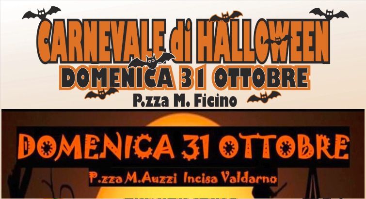 A Figline sarà una piazza Marsilio Ficino da brividi: alle 14.30 le maschere sfileranno a bordo del trenino del Norcenni Village, con un premio per la maschera più originale. Alle 15.30 spazio al CabarDuetto, spettacolo di musica dal vivo e comicità da paura con Massi Fruchi e Franci Marini. Organizza la Proloco Marsilio Ficino con l’associazione Paro paro e il patrocinio del Comune di Figline e Incisa Valdarno.