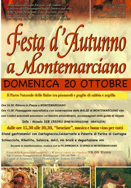 Domenica 20 Ottobre, a Montemarciano, grazioso borgo nel Comune di Terranuova Bracciolini, si terrà il consueto appuntamento con la “Festa d’Autunno”.
