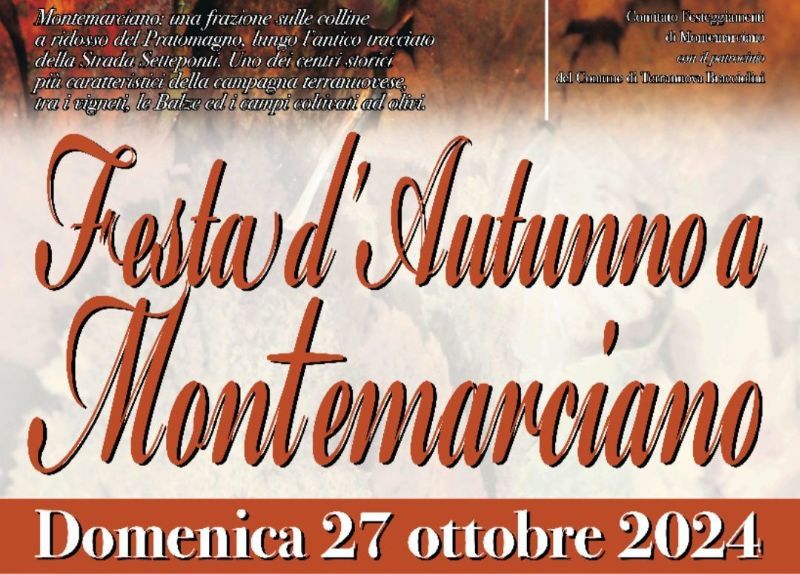 Torna la festa d'autunno a Montemarciano; come da tradizione stand gastronomici con prodotti tipici, ribollita,panini salsiccia, bruciate, migliaccio, frittelle di farina di castagne,vino brulé.