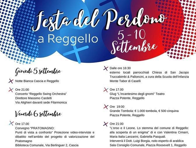 Anche Reggello si prepara a festeggiare la tradizionale “Festa del Perdono” che, nei giorni di Giovedì 5 - Martedì 10 Settembre, si terrà per le vie del Paese.