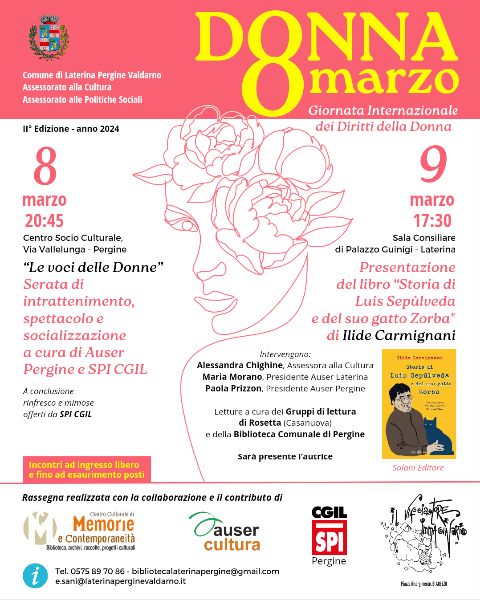 Comune di Laterina Pergine Valdarno Assessorato alla Cultura Assessorato alle Politiche Sociali organizzano per la giornata internazionale della donna, due appuntamenti nelle date  dell'8 e 9 Marzo