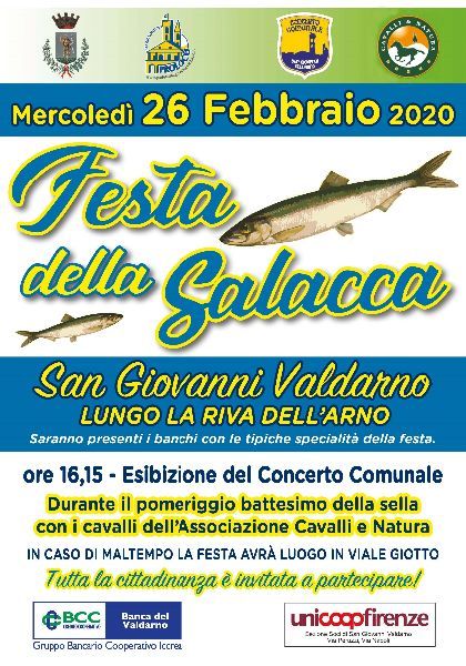 Mercoledì 26 Febbraio, nella golena del Fiume Arno (altezza Via F. Cervi), classico appuntamento con la “Festa della Salacca”, con la partecipazione del Concerto Comunale di San Giovanni Valdarno e dell’Associazione Cavalli e Natura.