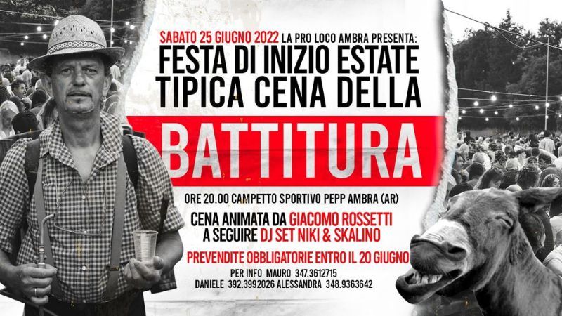 Dopo due lunghissimi anno, la Pro Loco Ambra ci porta tutti a tavola con la festa di inizio estate; alle ore 20.00 presso il campetto sportivo Bepp Una tavolata lunga 600 persone.
