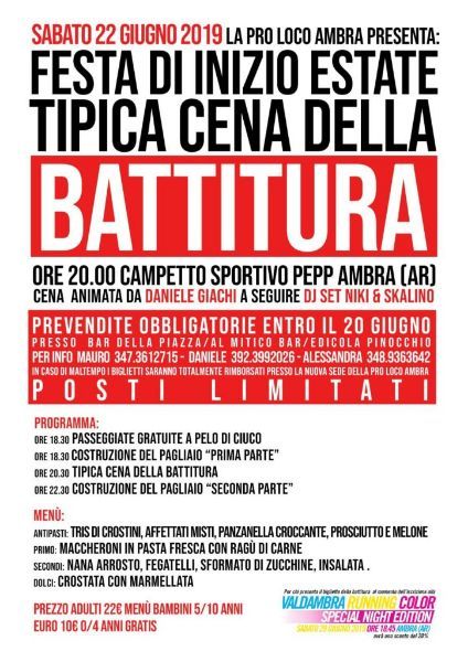- ore 20.30, presso il Campetto Sportivo Pepp Ambra: TIPICA CENA DELLA BATTITURA