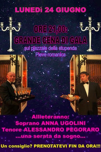 - ore 20.15: Cena “GRAN GALÁ SAN PIETRO”, piazzale della Pieve.