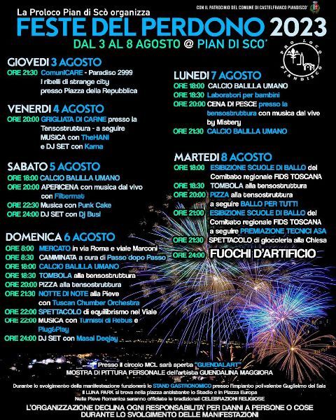 Da Giovedì 9 Agosto Pian di Scè celebra i festeggiamenti del Perdono, con una serie di eventi, concerti, spettacoli, stand gastronomici e molto altro.