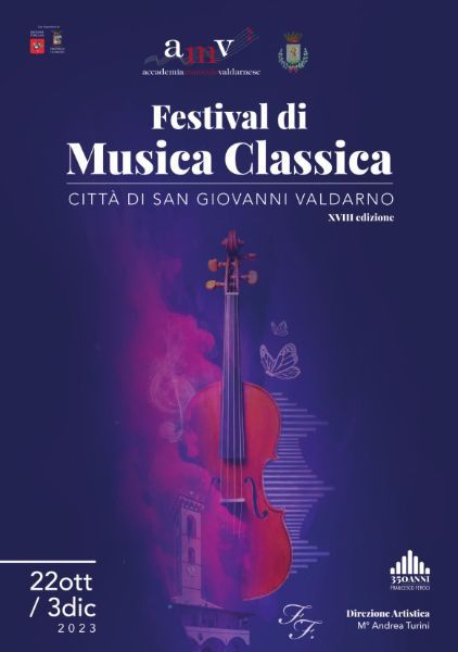 XVIII° edizione del festival di musica classica città di San Giovanni Valdarno, organizzato dall'Accademia Musicale Valdarnese; si presente per l'edizione 2023 con un programma lunghissimo composto da 15 date con vari appuntamenti in vari palchi della città, di cui uno presso l'istituto comprensivo Petrarca di Montevarchi