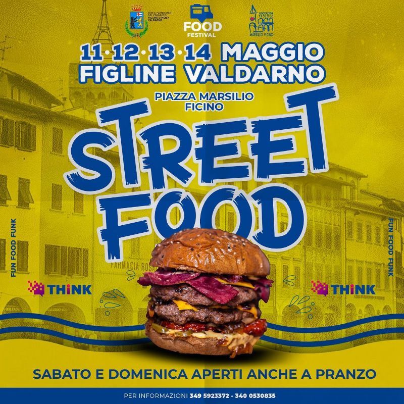 In collaborazione con la Proloco Marsilio Ficino Figline Valdarno organizza la 2a edizione del FOOD FESTIVAL - STREET FOOD a Figline Valdarno da gioved' 11 Maggio a Domenica 14 Maggio, in contemporanea con il THiNK - Festival della cultura digitale, con Laboratori per bambini e ragazzi, workshop, gaming, VR experience, presso Palazzo Pretorio, Teatro Garibaldi, Biblioteca Ficino, Villa Casagrande, Piazza Ficino.