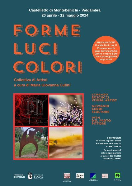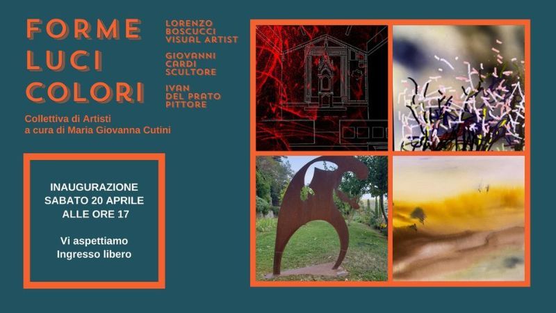 Il 20 aprile avrete un motivo in più per venire qui: inauguriamo la mostra FORME LUCI COLORI alle ore 17, con la presentazione di Maria Giovanna Cutini, curatrice della mostra insieme a Lorenzo Boscucci visual artist, Giovanni Cardi scultore, Ivan Del Prato pittore.