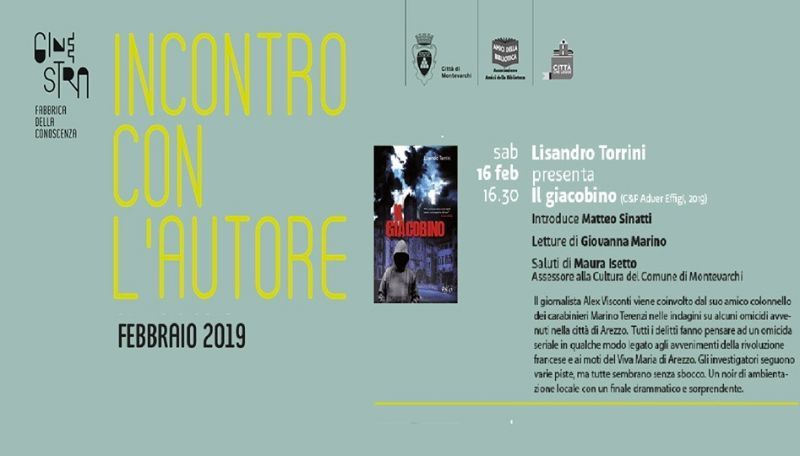 - Sabato 16 Febbraio, alle ore 16.30, presso Ginestra Fabbrica della Conoscenza a Montevarchi (AR), in occasione del ciclo “Incontri con l’Autore”, si terrà la presentazione del libro “Il Giacobino” di Lisandro Torrini. Ingresso libero fino ad esaurimento posti. Per informazioni: ginestra@comune.montevarchi.ar.it oppure 055 9108351;