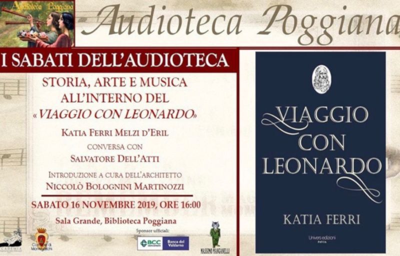 - Sabato 16 Novembre, alle ore 16.00, presso l’Accademia del Poggio di Montevarchi (AR), in occasione del ciclo di conferenze “Leonardo e il genio”: inaugurazione del ciclo “I sabati dell’audioteca” - “Storia, arte e musica all’interno del ‘Viaggio con Leonardo’”. Per informazioni: 055 9108314 – 055 9108230 – ufficio.cultura@comune.montevarchi.ar.it.
