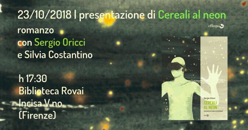 - Martedì 23 ottobre, alle ore 17.30, presso la Biblioteca Gilberto Rovai di Incisa Valdarno (FI), in occasione di “Agenda Letteraria – Per una comunità che legge”: presentazione del libro “Cereali al Neon” di S. Oricci. Per informazioni: 055 9125445.