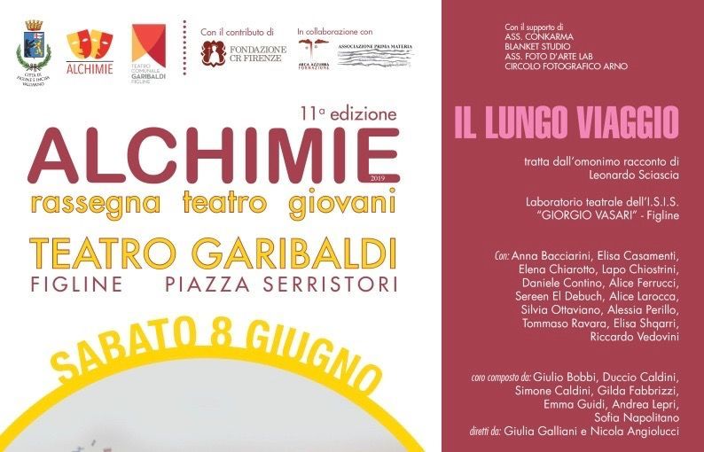 - Sabato 8 Giugno, alle ore 21.30, presso il Teatro Garibaldi di Figline Valdarno (FI), in occasione dell’11^ edizione di “Alchimie – Rassegna teatro giovani”: “Il lungo viaggio” – Laboratorio teatrale I.S.I.S., Istituto Vasari di Figline Valdarno (FI).