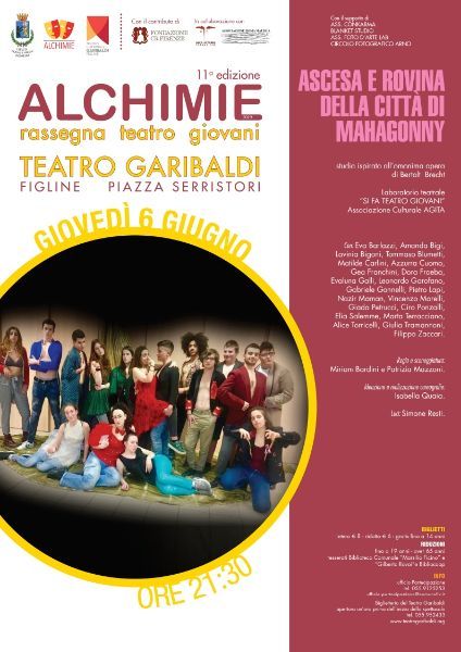 - Giovedì 6 Giugno, alle ore 21.30, presso il Teatro Garibaldi di Figline Valdarno (FI), in occasione dell’11^ edizione di “Alchimie – Rassegna teatro giovani”: “Ascesa e rovina della città di Mahagonny” – Laboratorio teatrale “Si fa teatro giovani” – Ass. Cult. Agita.