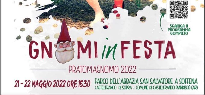 Nata come manifestazione correlata alla più conosciuta Festa internazionale degli Gnomi, PratomaGNOMO si colloca nella cornice di riferimento del Progetto Paesaggio Comune e propone, in ambienti più contenuti, ma di eguale pregio naturalistico ed ambientale ai piedi del Pratomagno, nella splendida cornice storica ed architettonica della Abbazia di San Salvatore a Soffena, la collaudata formula organizzativa e artistica che ha portato alla ribalta Nazionale le creature del “Piccolo Popolo”. Gnomi, Elfi e Folletti, unitamente a Fate, Nani, Troll e Giganti, allieteranno grandi e piccini nelle aree verdi del Parco della Badia , ma anche lungo sentieri e nel Borgo: