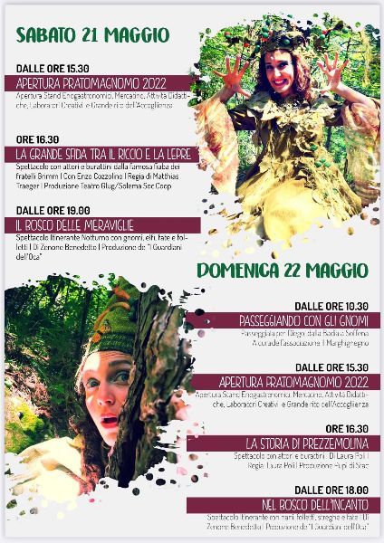 Gnomi in Festa organizzata dall'Amministrazione comunale di Castelfranco Piandiscò con Fondazione Toscana Spettacolo e l’Associazione culturale I Guardiani dell'oca, in collaborazione con le Proloco, le associazioni culturali e di volontariato del territorio, la prima edizione di Gnomi in Festa - PratomaGNOMO: progetto di Teatro Ambiente finalizzato alla sensibilizzazione delle nuove generazioni ai temi della tutela ambientale e dell’educazione alla dimensione fantastica e creativa.