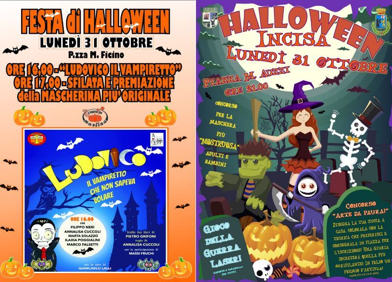 In piazza Auzzi a Incisa streghe, fantasmi, vampiri e zucche da brividi, dalle 21 inizia infatti la Festa di Halloween a cura di Pro Loco Aldo Caselli di Incisa, con il patrocinio del Comune di Figline e Incisa Valdarno.