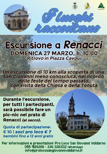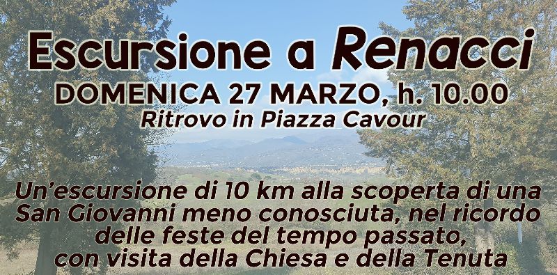 Ritrovo dei partecipanti alle ore 10.00 in Piazza Cavour, e partenza verso Renacci, con visita alla Tenuta di Renacci e pic-nic nel prato antistante la Chiesa (al sacco).
