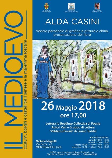 Dal 19 Maggio al 17 Giugno la Galleria Magiotti di via Roma 43 a Montevarchi (AR) ospiterà la mostra di grafica e pittura a china, intitolata "Il Medioevo", dell'artista Alda Casini, curata dall'Associazione “Montevarchi Arte” con il patrocinio del Comune di Montevarchi.