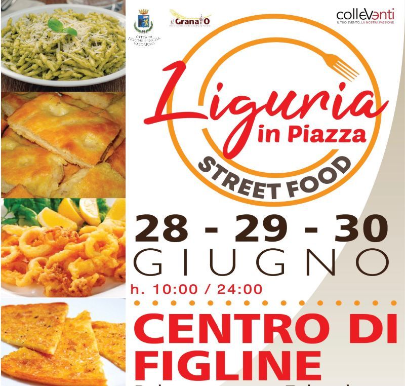 - dalle ore 10.00 alle ore 24.00, Piazza Ficino – Figline Valdarno: “LIGURIA IN PIAZZA - STREET FOOD”, manifestazione gastronomica dedicata alla cucina ligure ma anche musica, intrattenimento, area giochi per bambini, mercatino artigianale e saltimbanchi.