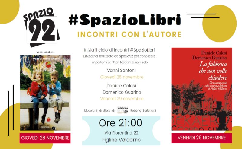 - ore 21.00, Associazione Spazio92 (via Fiorentina 22 Figline Valdarno): presentazione del libro “LA FABBRICA CHE NON VOLLE CHIUDERE” di Domenico Guarino e Daniele Calosi, segretario generale Fiom Cgil Firenze. Protagonista: la vicenda della Bekaert, raccontata attraverso le testimonianze degli operai, delle famiglie, delle istituzioni e dei cittadini che, circa un anno fa, hanno ricevuto la notizia della chiusura della fabbrica da parte della multinazionale e che ancora oggi continuano a opporsi e a cercare di far valere i loro diritti.