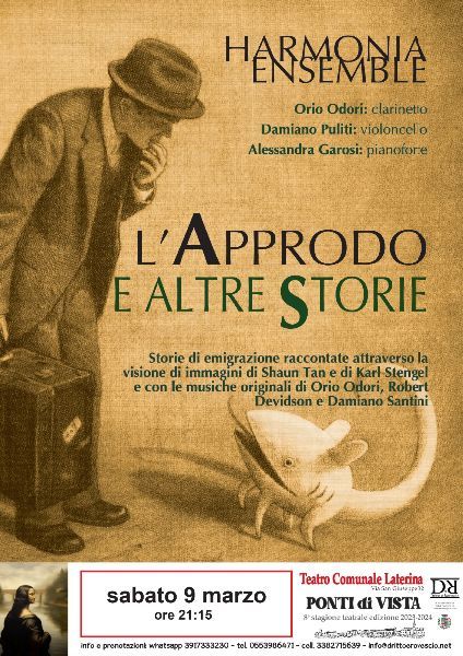 Sabato 9 marzo presso il teatro Comunale di Laterina, in scena il video racconto basato sul graphic novel di Shaun Tan, "L'Approdo"; con musiche di Orio Odori (clarinetto), Damiano Puliti (violoncello), Alessandra Garosi (piano).