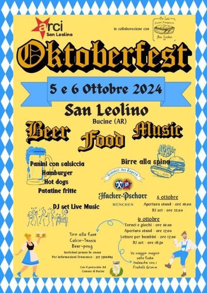 Oktoberfest arriva a San Leolino per due giorni di puro divertimento, dove vi sembrerà di essere a Monaco di Baviera... ma tutto a due passi da te, nel meraviglioso borgo di San Leolino.