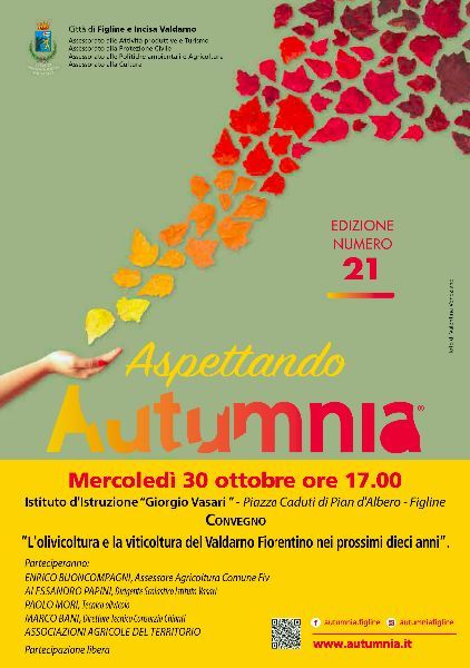 In occasione di “Aspettando Autumnia”, Mercoledì 30 Ottobre, presso l’Istituto di Istruzione Superiore “Giorgio Vasari”, in piazza Caduti di Pian d’Albero a Figline, si terrà il convegno sul tema de “L’olivicoltura e la viticoltura del Valdarno Fiorentino nei prossimi dieci anni”.
