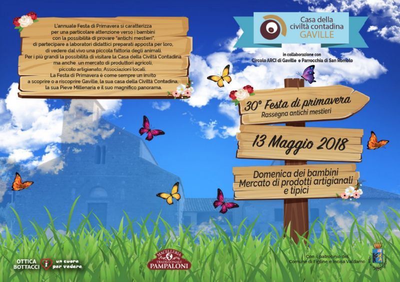La festa di Primavera di Gavile compie 30 anni, due giorni  per grandi e piccini, Sabato 12 e domenica 13 maggio irganizzata dalla Casa della Civiltà Contadina di Gaville -  in collaborazione con il Circolo Arci, la Parrocchia di San Romolo, la partecipazione dell’associazione Le Muse, del Circolo Filatelico, del Museo Mine di Castelnuovo dei Sabbioni e del Calcit Valdarno Fiorentino e con il patrocinio del Comune di Figline e Incisa Valdarno