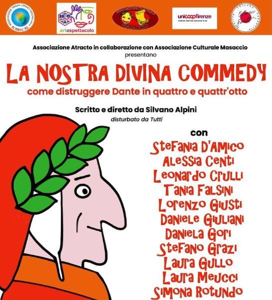 Si tratta di “La nostra Divina Commedy - come distruggere Dante in quattro e quattr’otto”, una messa in scena del poema dantesco che rivisita in modo del tutto originale i più importanti personaggi e le loro storie. Quindi vedremo Virgilio, Francesca, Beatrice, Caronte, il Conte Ugolino, Pia de’ Tolomei e lo stesso Dante, passando da Inferno, Pugatorio e Paradiso con un susseguirsi di racconti, battute, colpi di scena.