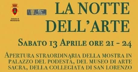 Sabato 13 Aprile, dalle ore 21:00 alle ore 24:00, a Montevarchi, è prevista ”La Notte dell’Arte” con l’apertura straordinaria: